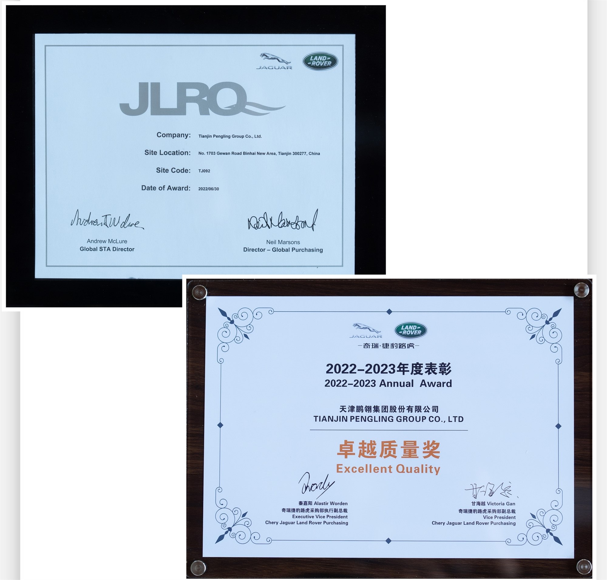 捷豹路虎全球颁发给供应商工厂的质量成就奖,也是捷豹路虎授予供应商的最高荣誉与褒奖。此奖项的获得充分体现了我公司在质量管理能力、交付能力、服务能力、持续提升能力等诸多方面在捷豹路虎供应商阵营中的表现突出。