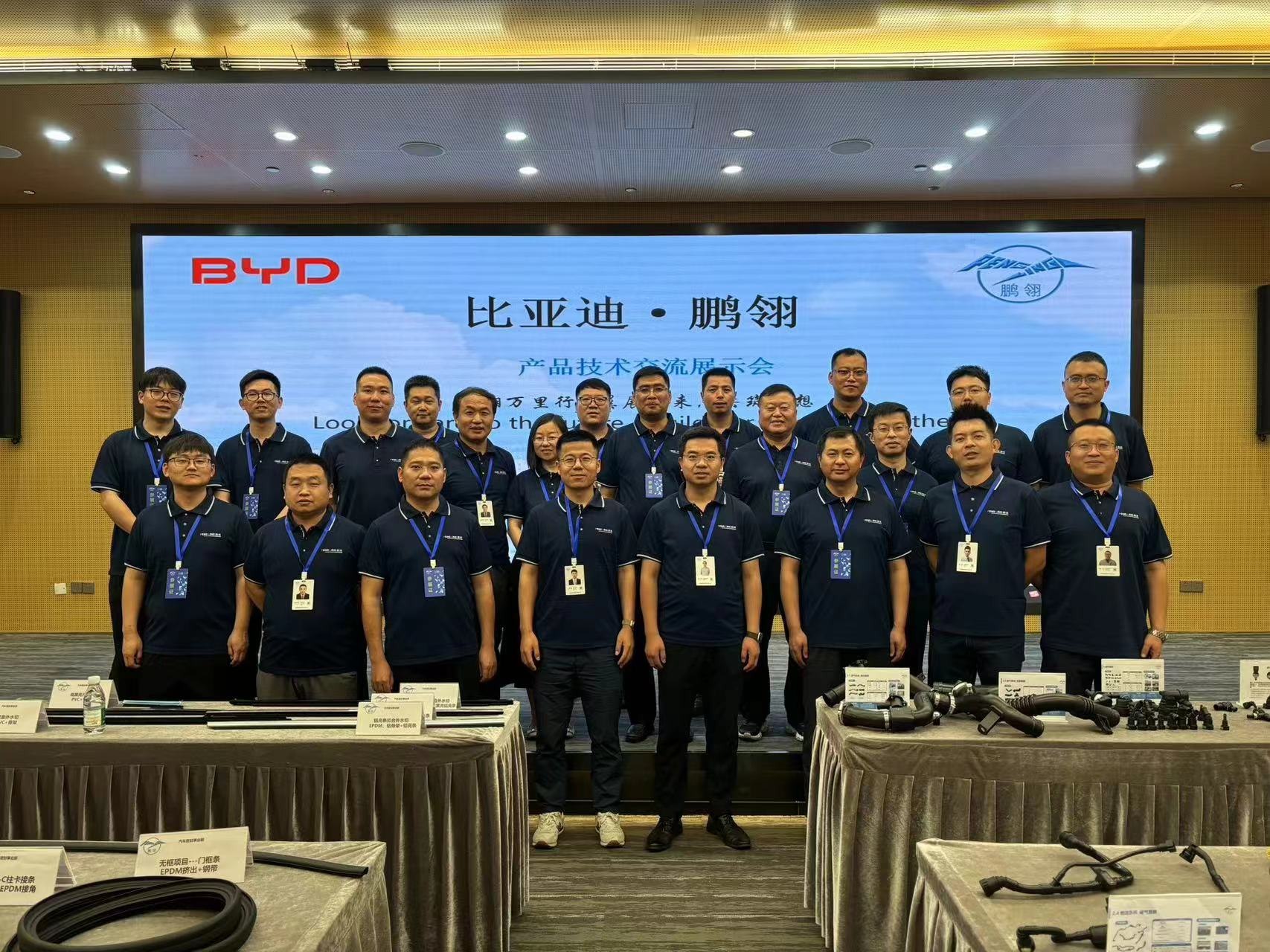 在现场,我们共展示近百件展品。其中:流体管路业务重点介绍了新能源汽车热管理系统管路及总成、燃油系统管路总成、进气系统管路总成、车身其他附件;密封条业务展示了欧系、日韩系、无边框、零阶差密封系统以及低成本轻量化等多个创新产品的前沿研发成果,吸引了众多比亚迪同仁前来参观和交流。