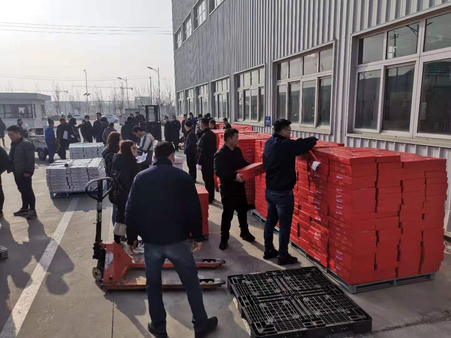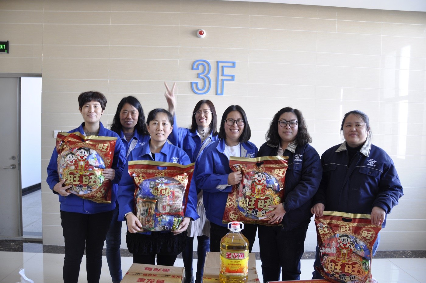 1月31日中午,满载1600余份海产品的卡车,抵达公司。来自荣成石岛的野生黄花鱼及海鲜酱礼盒,带来了公司董事长远在山东的问候。员工们深受鼓舞,发放现场热火朝天,在快速地完成了卸车分装后,员工们先是以车间/部门为单位按次序领取福利,接着便高效有序地分发到了每位员工的手中。