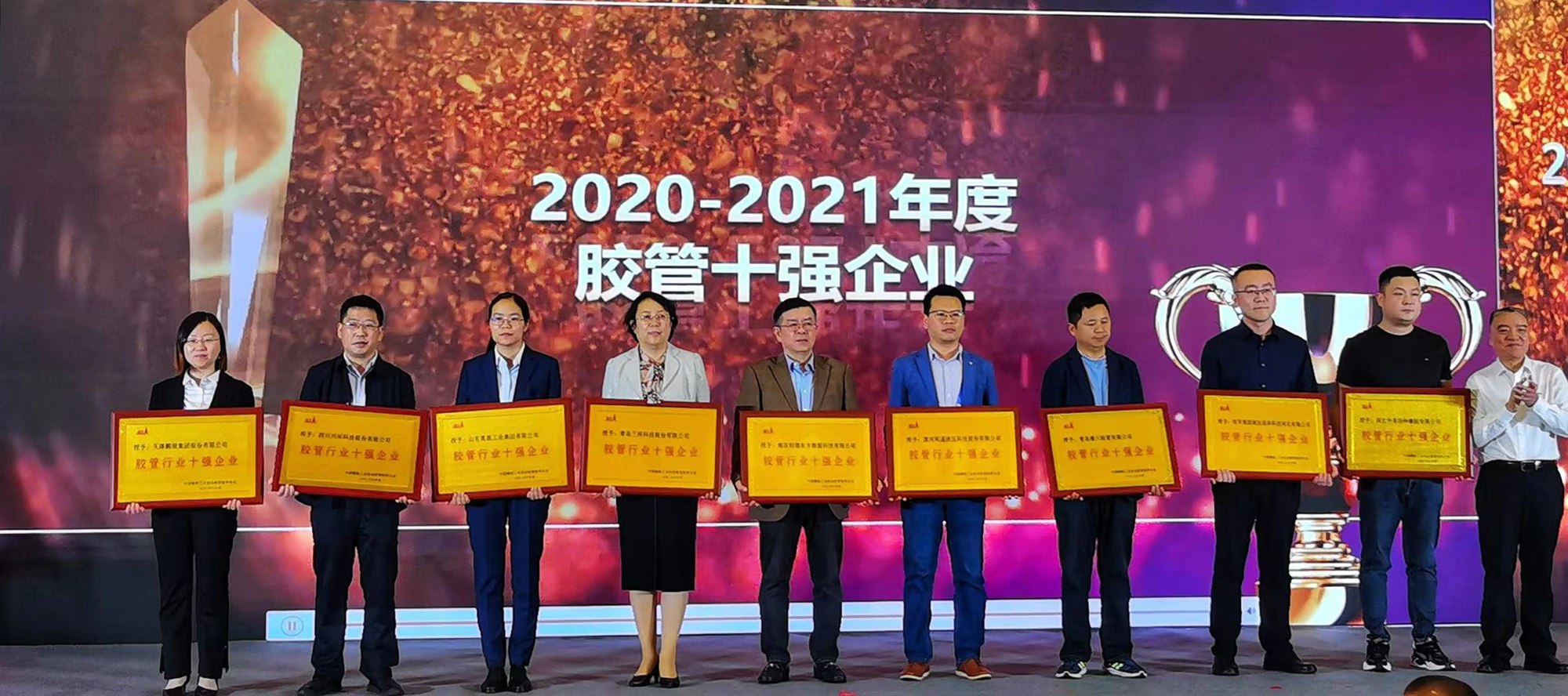 论坛期间公布了我公司再度荣登2020-2021年度“胶管十强企业”榜首,继2009年以来连续12年蝉联;董事长王志方先生荣获“优秀企业家”称号;技术中心材料研究室主任张彬荣获“优秀科技工作者”称号。